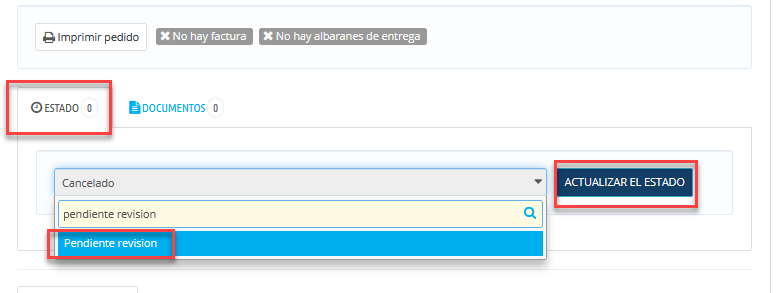 - En la sección de ESTADOS cambiarlo primero a al ESTADO (1) "Pendiente Revisión"