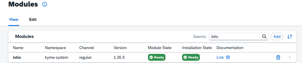 istio | kyma-system | Service mesh and mTLS (activated in Step 5) |