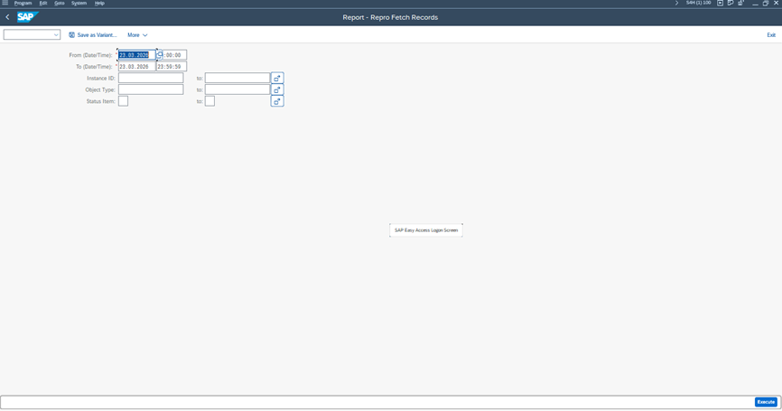 - Access Transaction: Enter transaction code ZONT_REPRO.