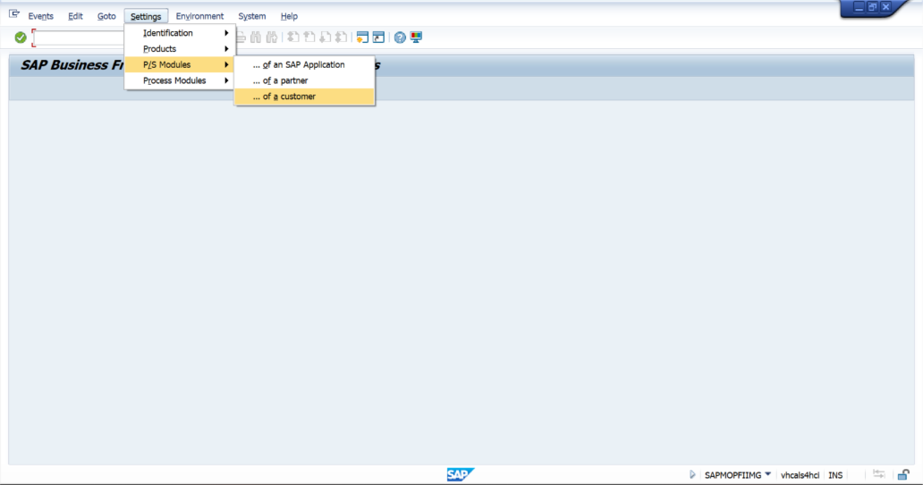 Select Settings – P/S Modules – of a customer