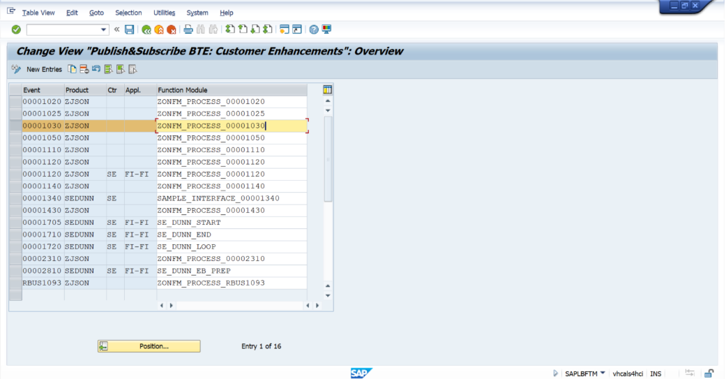 Add entry with the BTE number and the Function Module you created before: