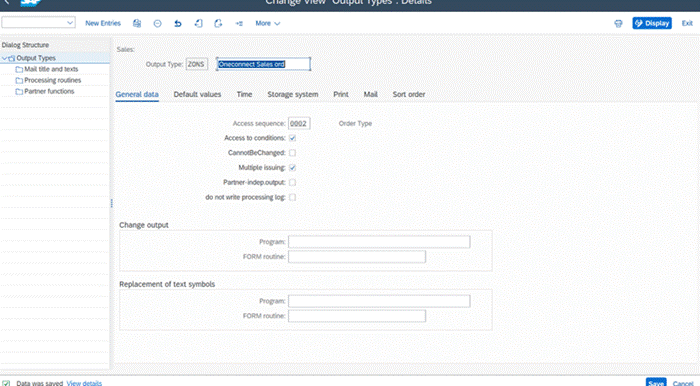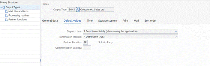 Figure 2: The new Output Type ZONS entry