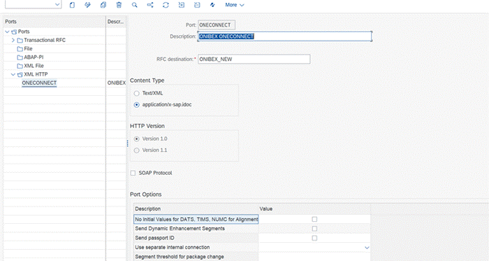 Figure 11: XML HTTP port ONECONNECT in