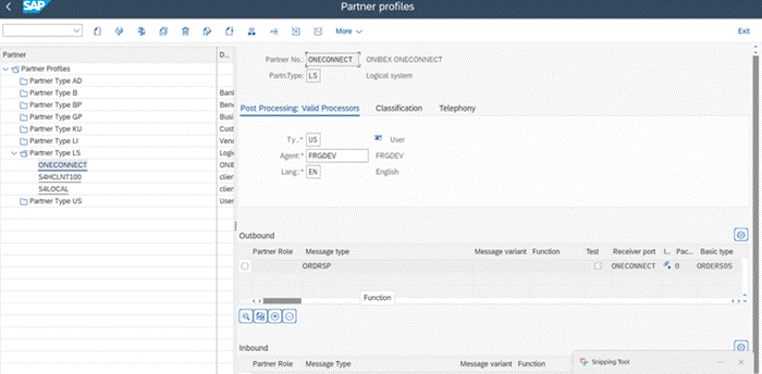 In the Partner Profile, add an Outbound