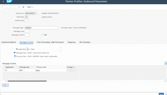 IDoc generated for this Message Type will be routed through the ONECONNECT