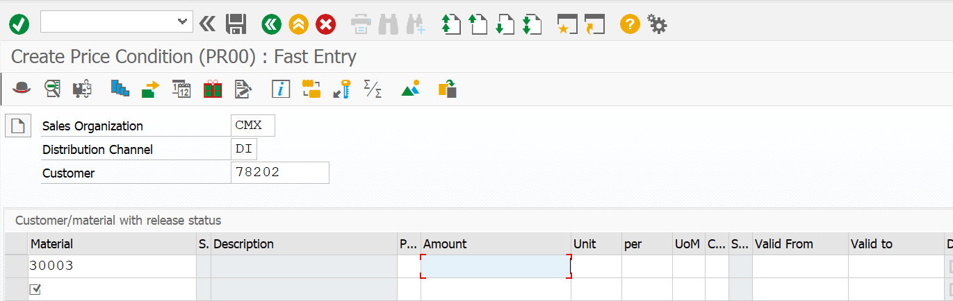 Figure-82: Example of PR00 price creation for a Customer-Material combination in VK11 T-Code.
