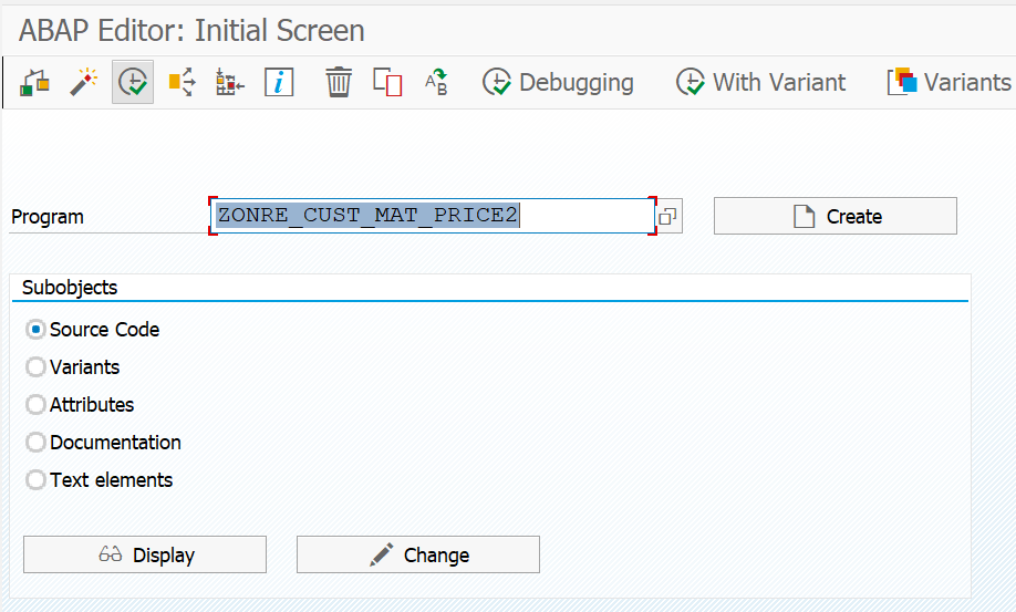 Once all customer-specific pricing is created, their corresponding lists will be sent from SAP to the E-Commerce portal through a program called "ZONRE_CUST_MAT_PRICE2". This program runs on transaction SE38, as shown on Figure-83. After clicking on the run button, another screen appears to define delimitations or load a variant as the numbers of the customer to which the list prices will be sent. Once the parameterization field S_PAR marks ONIBEX, the program is run by clicking on the the tick mark button: