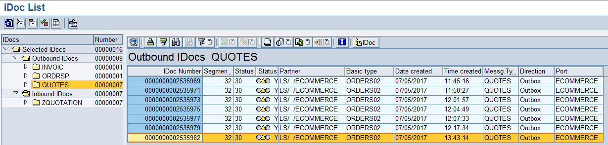 Figure-81 WE02 Transaction showing the QUOTES iDOC VIEW as output confirmations for Reservations.