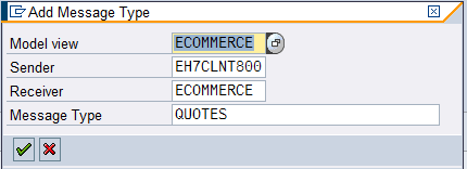Now move on to transaction BD64 for the last configurations. BD64 T-Code deals with the Distribution Model of the QUOTES iDOC’s output towards the E-Commerce. In the editing mode of this transaction, the "Add Message Type" button is pressed to display the following Figure-78: