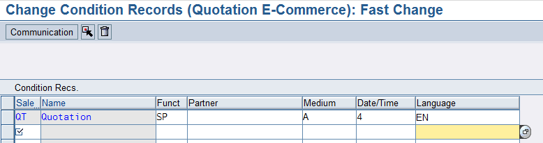 Figure-73 Selecting the QT sales document type as Condition Record for the ZQEC message.